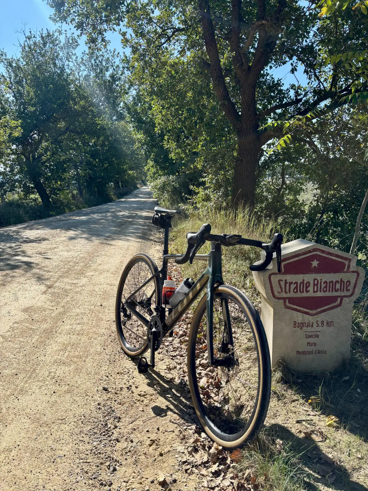 A ride that threads the central Chianti hilltowns. After rolling through Radda, we settle into a forested climb — a shaded, peaceful ascent through oak and chestnut trees — before it opens into a smooth, flowing descent straight into Gaiole in Chianti.